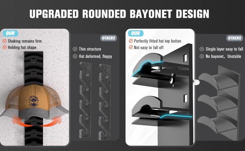 - ONE HAT, ONE LAYER: Hat organizer is designed with one hat and one layer for easy access. Unlike hat hooks on the market, it is difficult to remove the bottom layer of hats. No need to stack layers, even the bottom layer of hats can be easily removed by gently picking up the brim