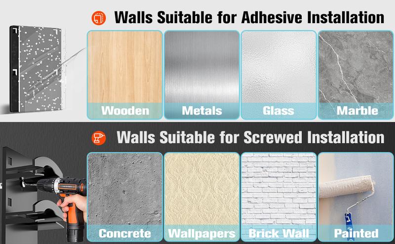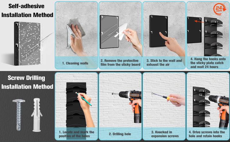 - TWO INSTALLATIONS METHODS: Hat Rack for wall can be installed in two ways: self-adhesive and screw drilled holes. You can choose the appropriate method according to the usage scenario. Note: Due to the firm sticking, please confirm the direction and position before sticking, the part of the wall plate with holes is the top to avoid forming repeated tears